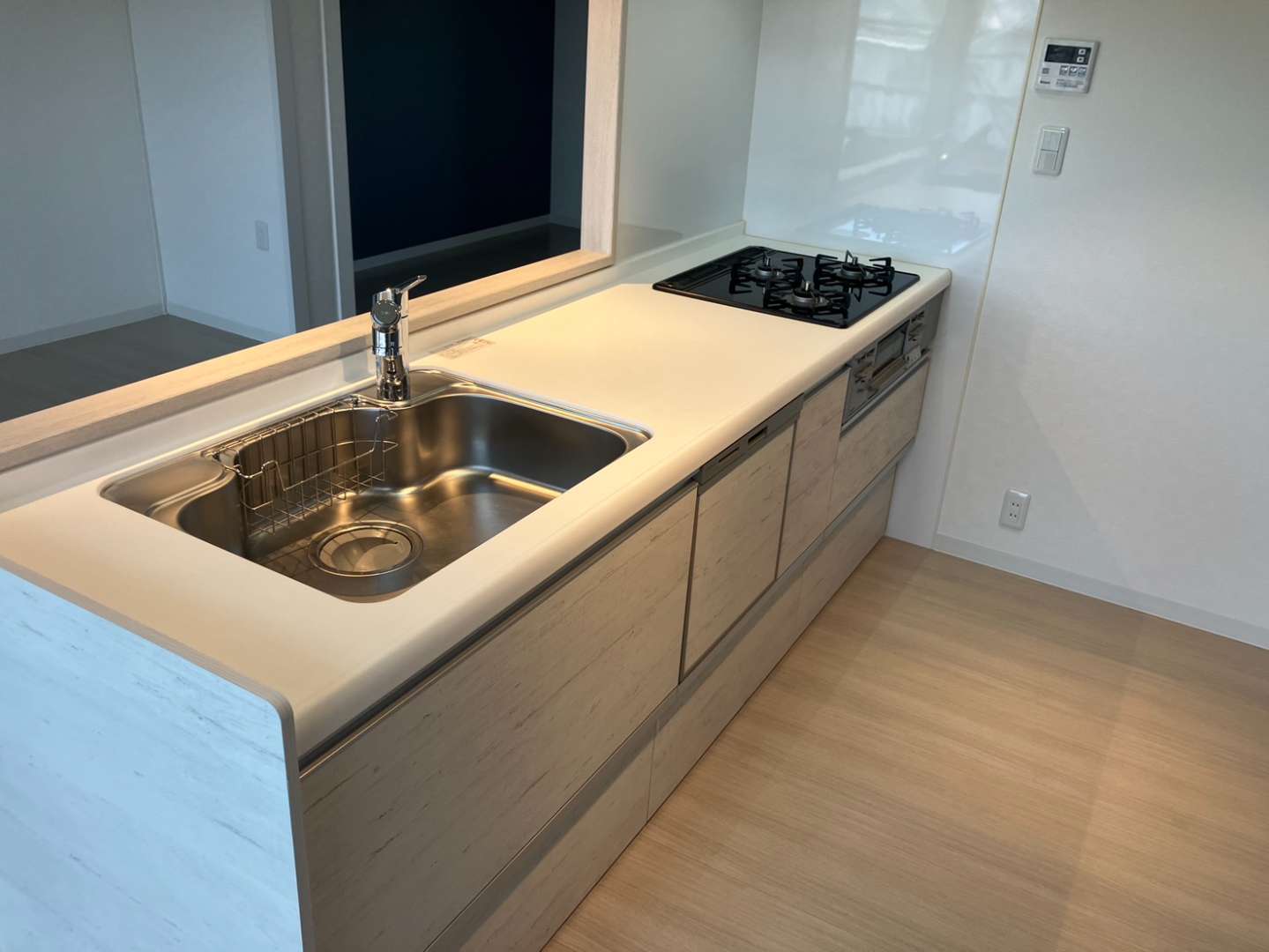 キッチン交換は、単に設備を新しくするだけでなく、背面や床下に隠れた配管状況のチェックも重要です。今回も目に見えない部分にもしっかりと手を入れ、次の入居者様に安心してご使用いただける仕上がりを目指しました。